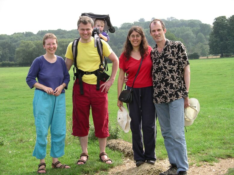 8/15: Erica's relatives Simon and Celia, their kids, and common friends Bjorn and Livia visit from London. The kids discover the cache of toys at Myles' house. We walk across Port Meadow to The Perch, then come back and have sandwiches. More pictures are at http://newleaf.homeip.net/~livia/2004-08-15Oxfordvisit/index.html.