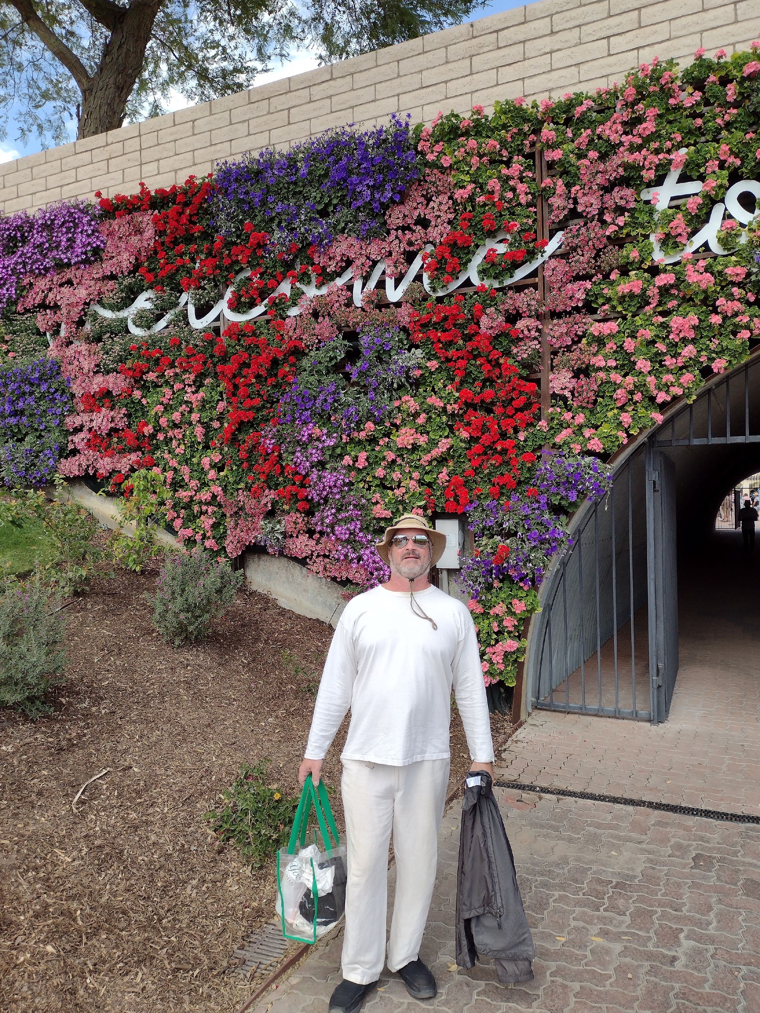The girls (Karen and Terry) arrive from Denver and come over for dinner. We go to El Paseo (a chic area of luxury stores) and try to go to Jack's woodfire pizza, but their computer is down and it looks like a disaster, so we go to a smaller place, which is OK but slow.