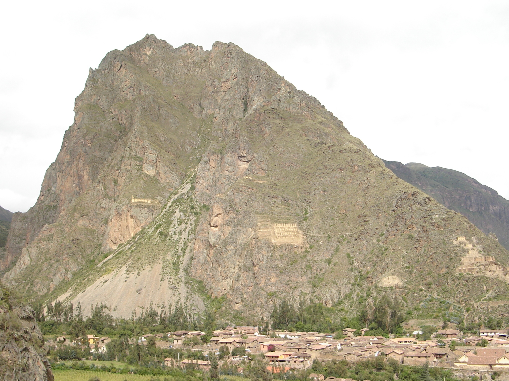 Across the valley is a mountain with two features resembling human faces, one on the face of the mountain, the other in silhouette. On June 21 (winter solstice in these parts) the sun appears to rise out of the latter; this was a primary holiday for the Incas.