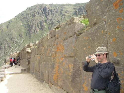 We continue about 15 miles down the valley to Huayallatambo, a tiny town over which, atop a steep terraced slope, looms the Temple of the Sun. We climb a long staircase directly up the slope.