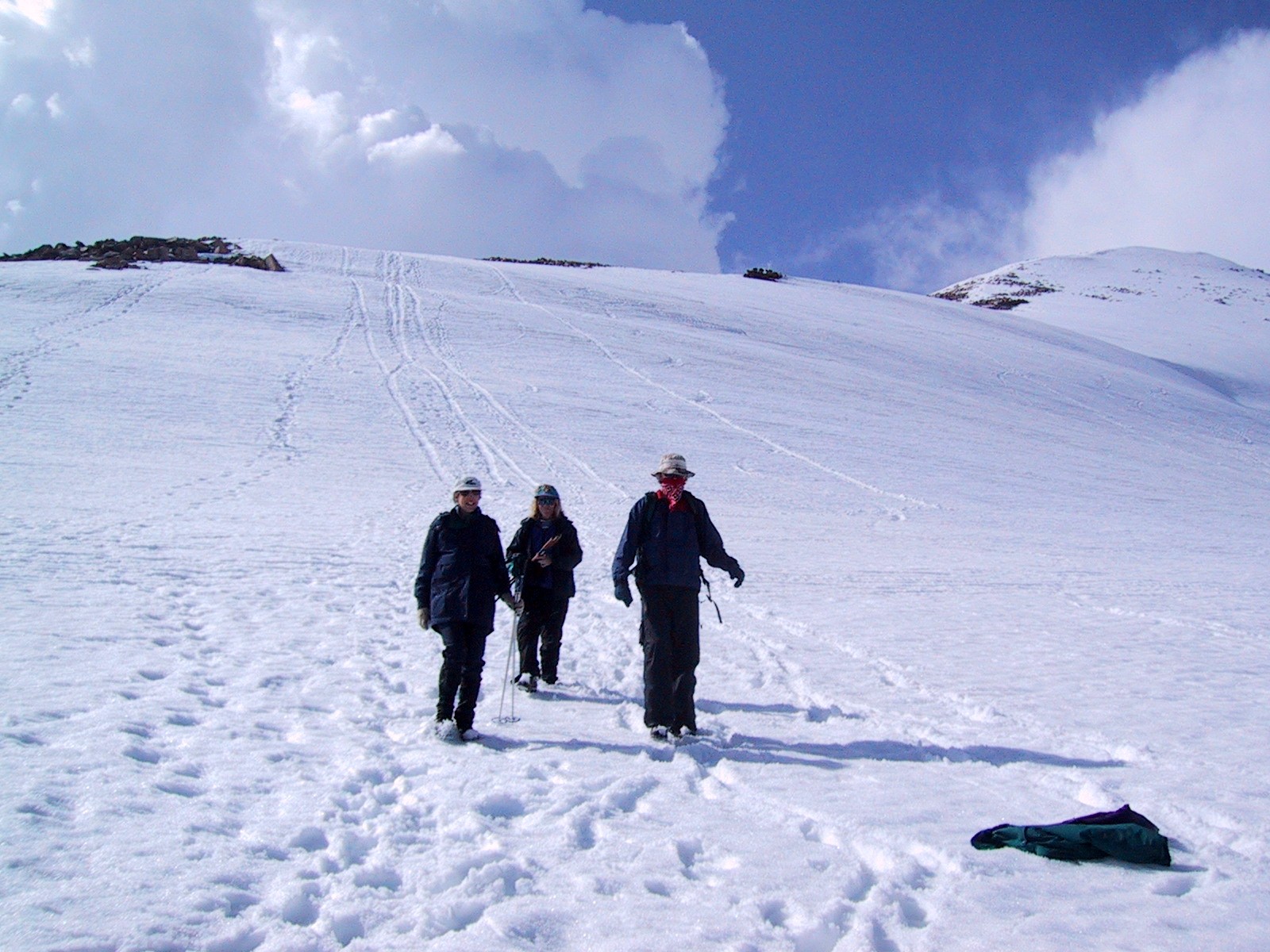 We both have mild sunburn, having forgotten sunscreen on the first day. Nothing other than that, which is miraculous since I've had a very sore back recently, a strained calf muscle, and other aches and pains. Walking in snow is very easy on the joints. I return feeling better than when I left, highly energized, and wishing that I had another peak to climb tomorrow.