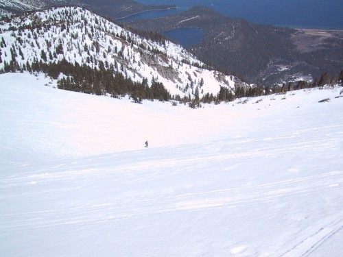 At the bottom, we chat with a pair of backcountry skiers who suggest that we go to Mt. Tallac the next day. Bob B. seconds this, and gives us some route-finding advice.