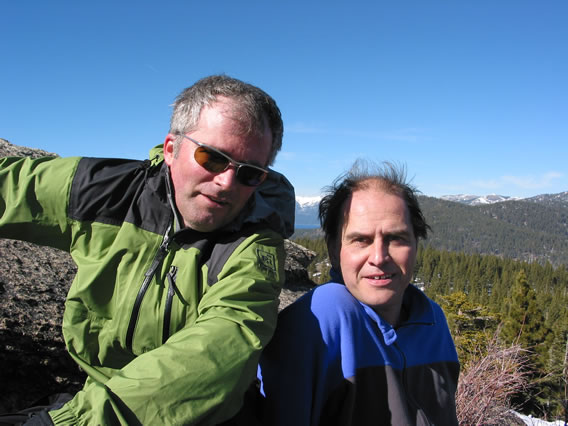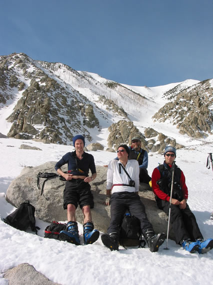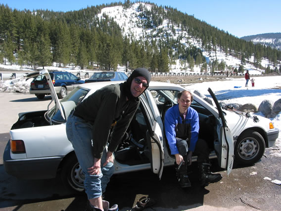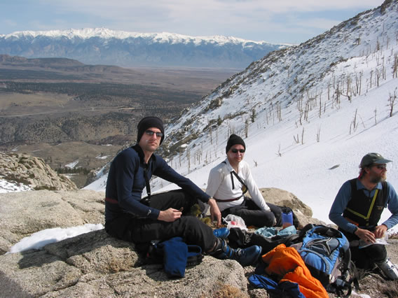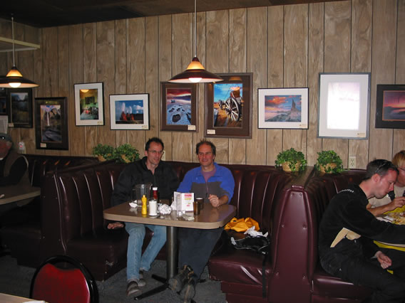 The next morning we drive to 'The Breakfast Club' in the town of Mammoth Lakes, where we meet our guide S.P. (a wiry New Zealander) and the fourth client, Boris (from Germany by way of L.A.). There's a confusion about the time - we were told 7 AM but S.P. and Boris arrive at 7:30. So be it.