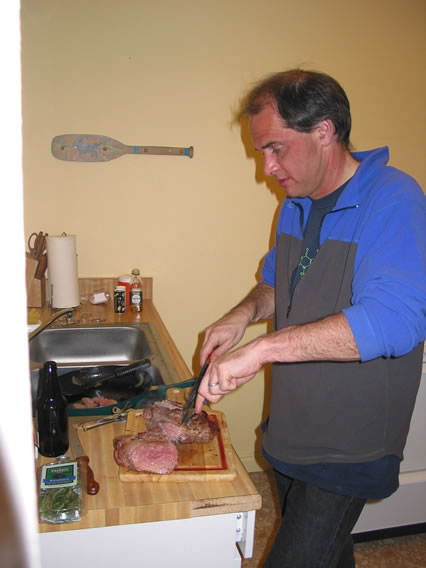 Ron cooks a fabulous dinner.