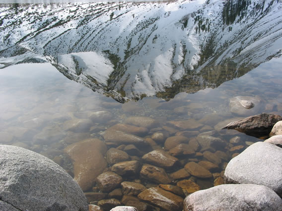 We drive up to Convict Lake and walk halfway around it,