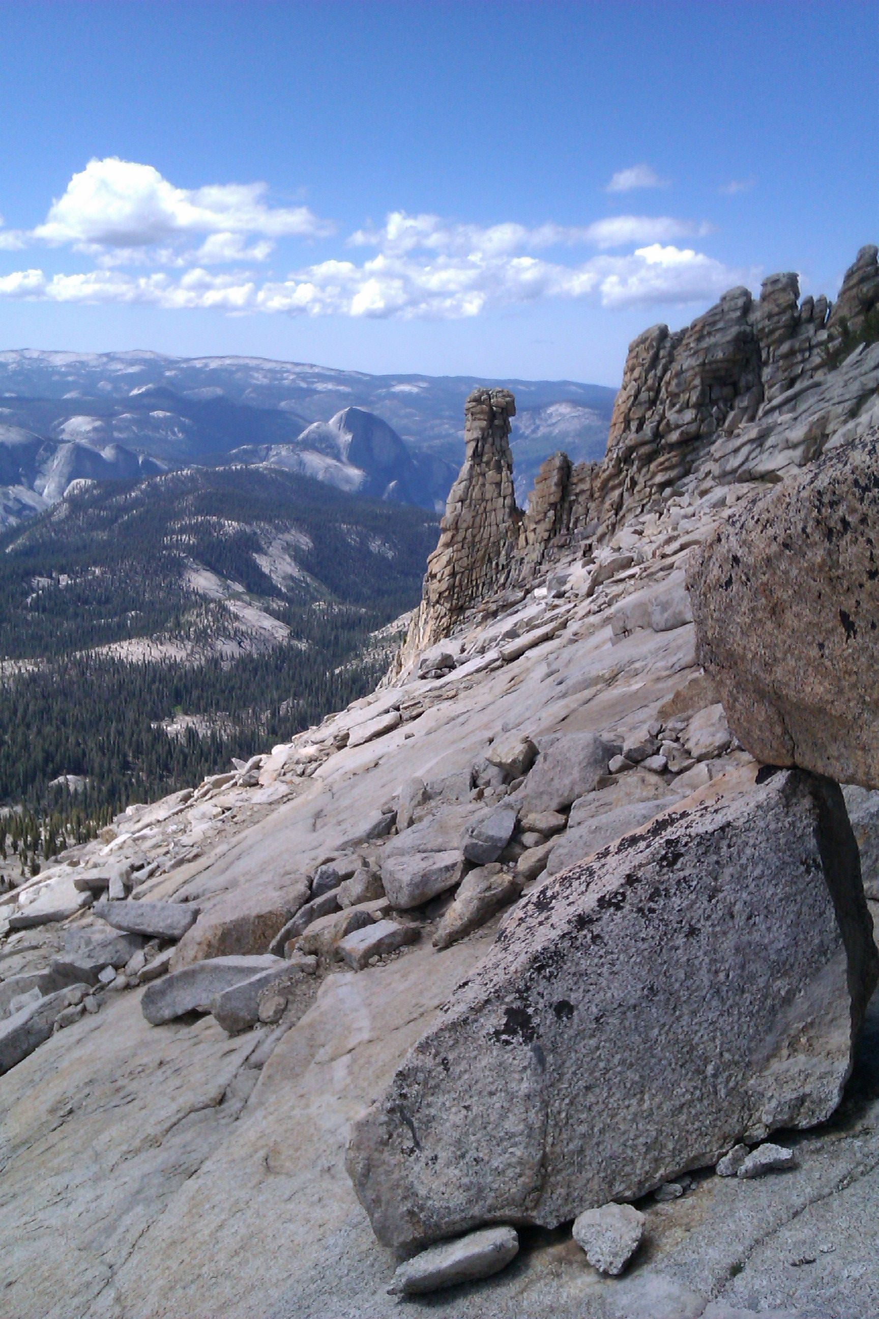 The trip back down the rocks is physically demanding, but route-finding is easier because the terrain is spread out before us.