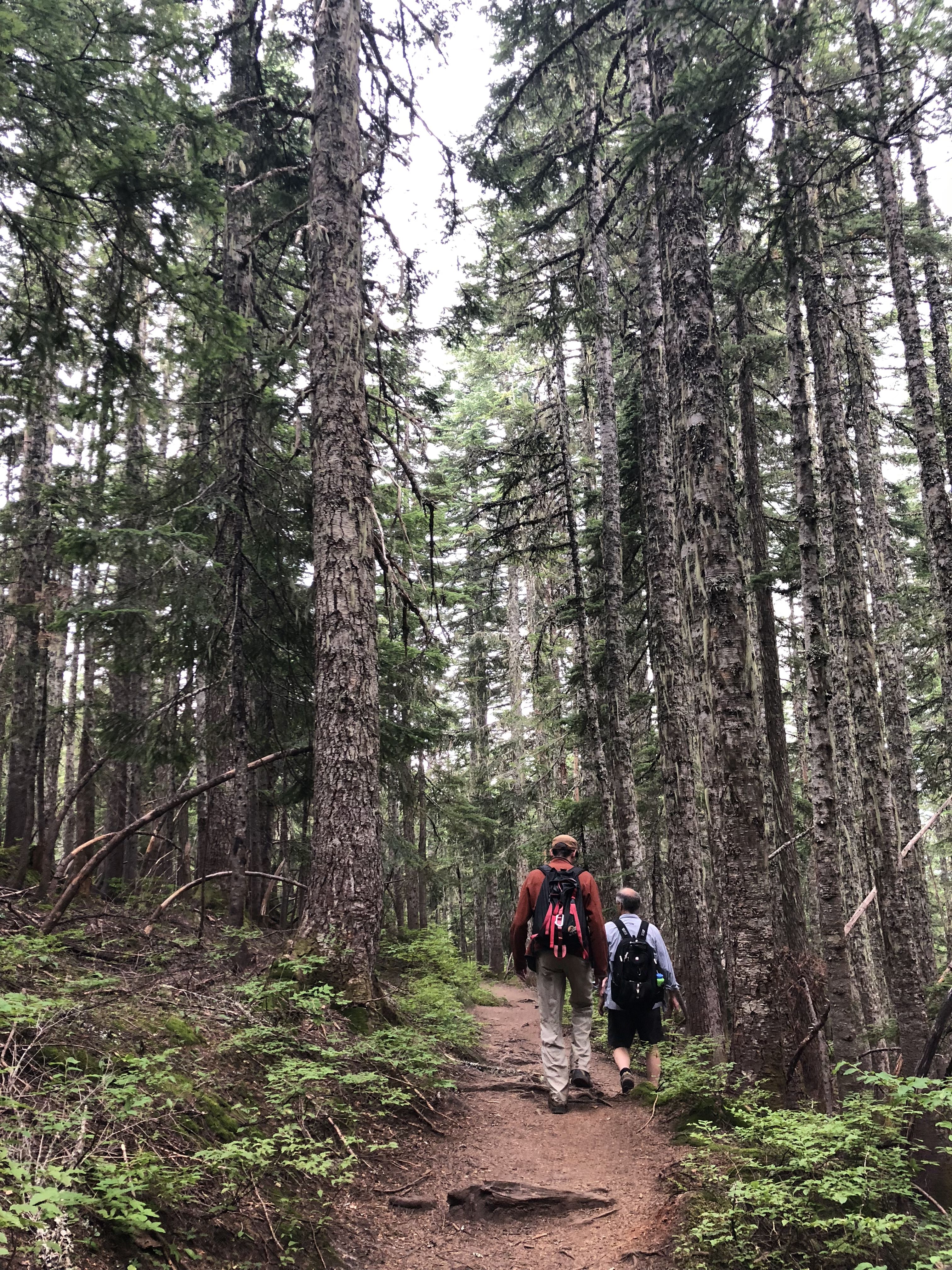 We reach the trail at the top of the ridge. We can't find the trail down to Pratt Lake, so we just come back down (by the actual trail, which somehow we didn't see earlier).