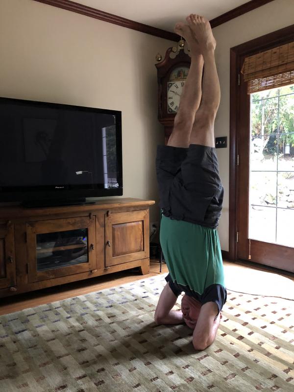 Back home, we spend some time doing yoga, headstands, and other stretch/balance stuff.