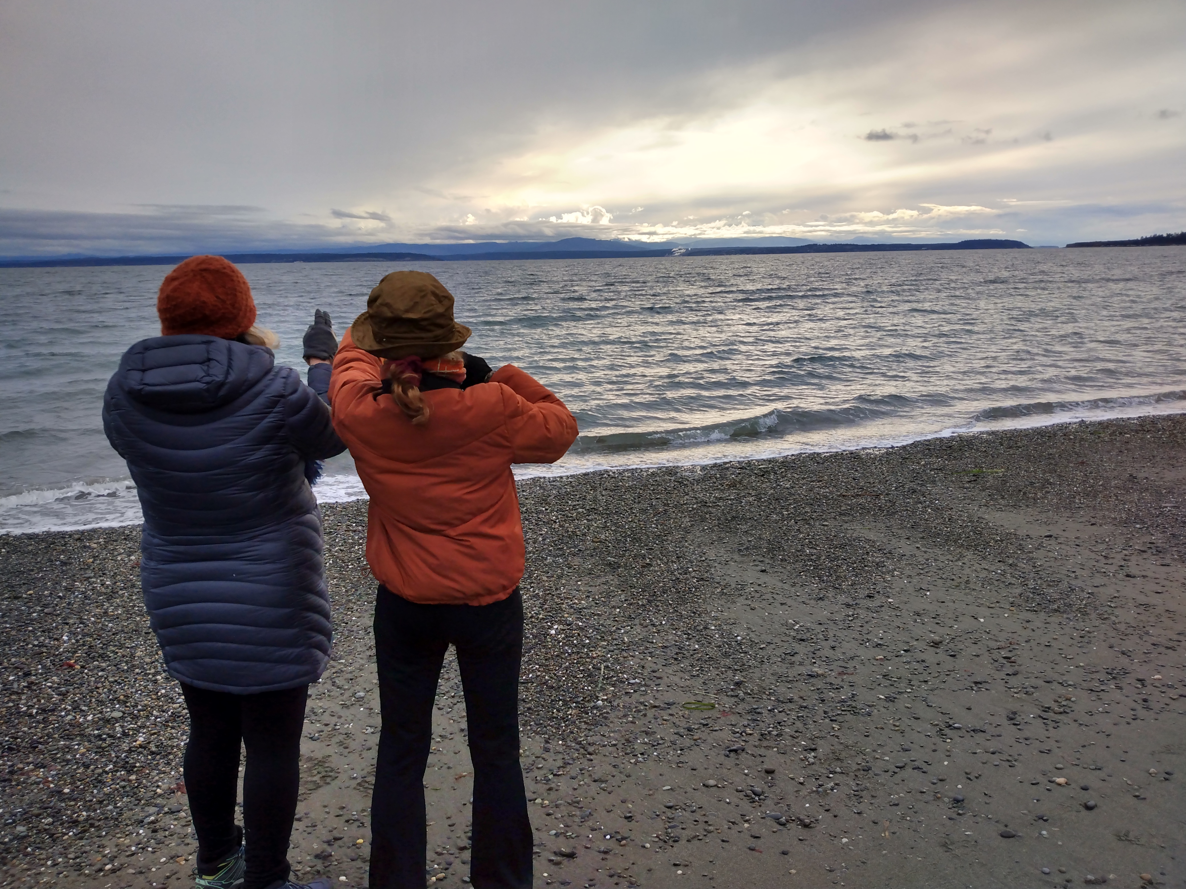 Afterward, Maryse, Laurel and I go to Driftwood Park (or Eagle Feather Park), where there's a spectacular view of the cloud-shrouded Olympic peaks in the distance.