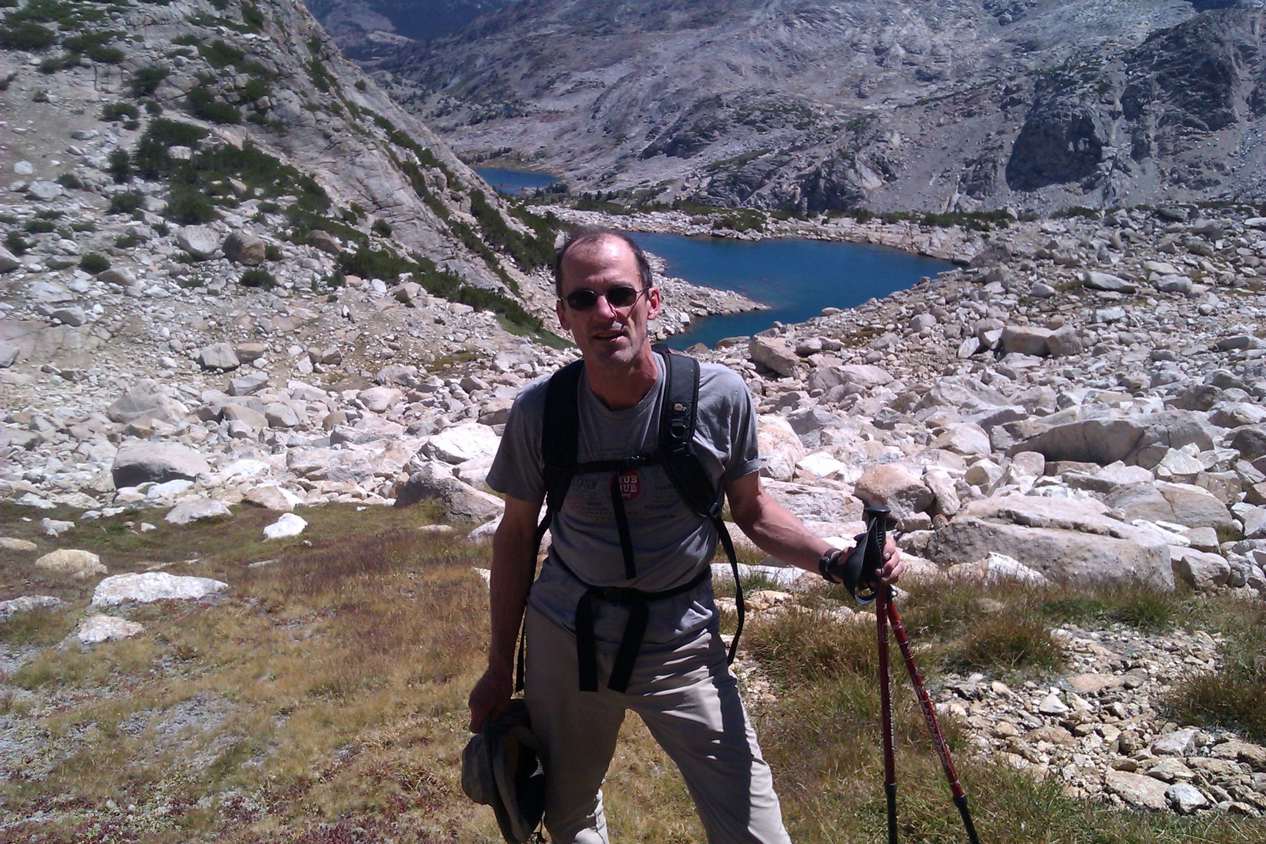 We reach the plateau above Alpine Lake and stop for lunch. We ascend the steep slope above the plateau; trying to stick to the grassy bands, avoiding the rocky parts where Todd fell and broke his hand a few years back.