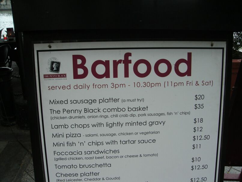 takes me on a walk to Clarke Quay, a Riverwalk-type area,