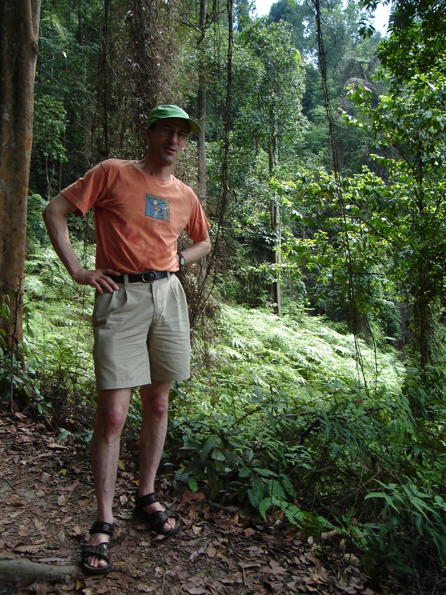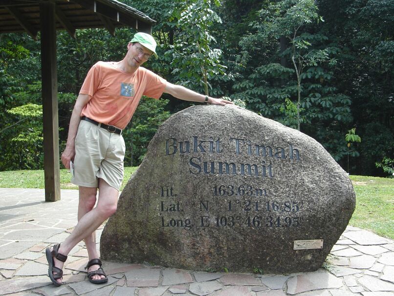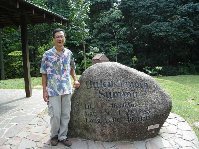 We walk to the highest point in Singapore (not all that high). We jump a fence and take an overgrown path to the rim of a very large quarry (part of the preserve is a granite outcrop).