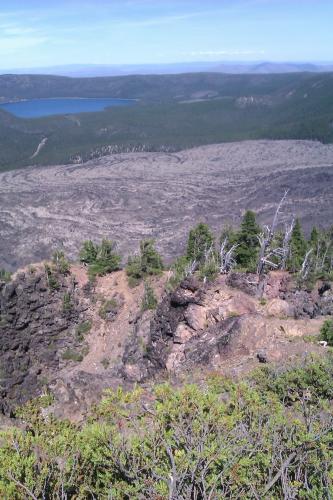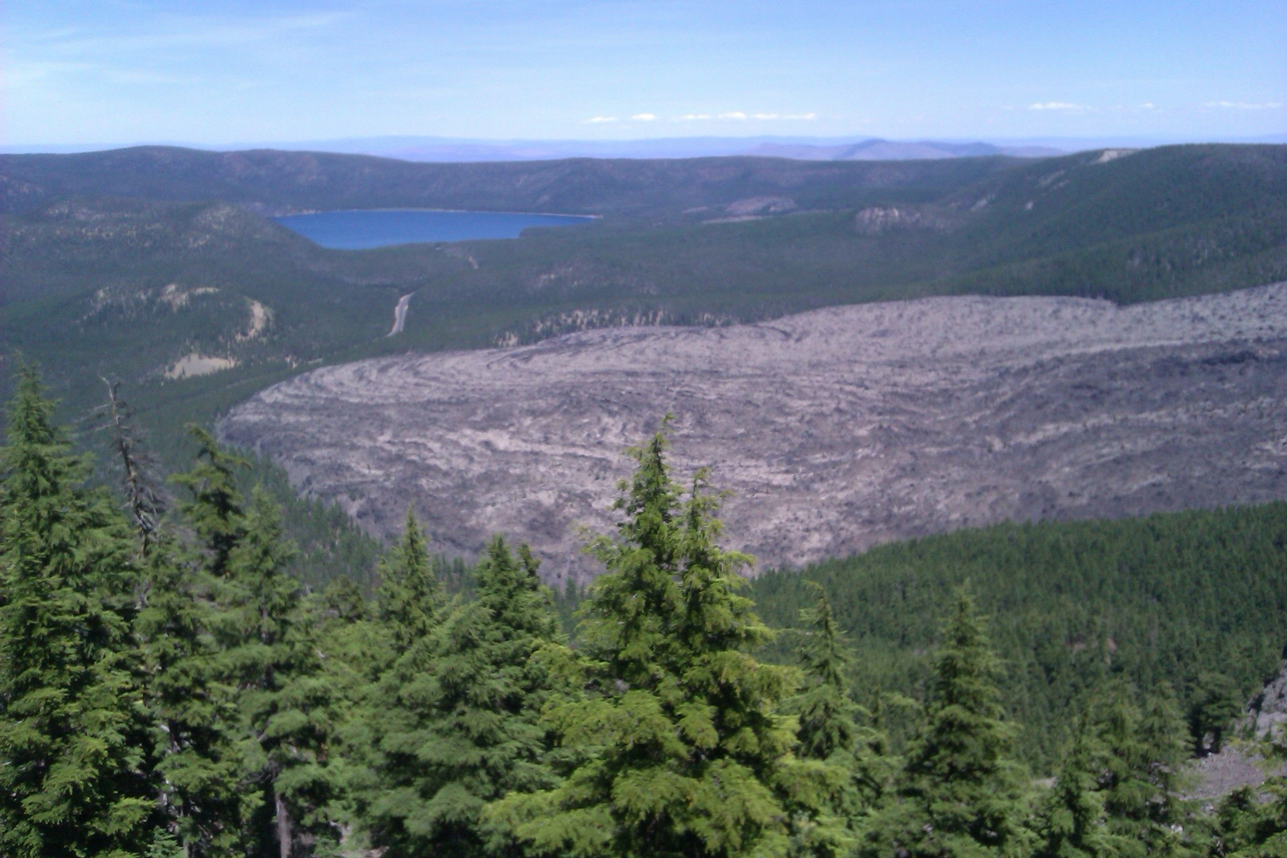 At 2 PM Noah and I set out to climb Paulina Peak, the highest point in the hills that encircle Newberry Crater, a huge (5 mile diameter) volcano remnant. The crater has two large lakes (Paulina Lake and East Lake) with geothermal vents on the north edge, a cone between them, and a huge obsidian flow on the south side.