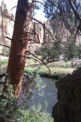 We do a nice hike which goes along a river, circles around the back of the rocks, goes up a gully near Monkey Face, then descends steeply down the front face.