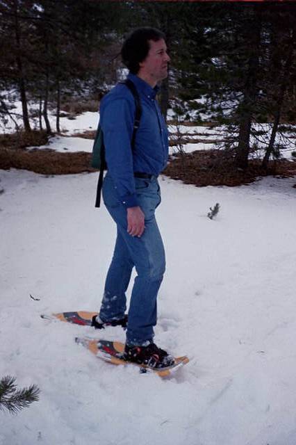 I immediately fell in love with snowshoeing. They let you move easily in most snow conditions; the built-in crampons can take you up steep slopes. Steve, who outweighs me by quite a bit, had some trouble sinking into the snow; I think he needed larger snowshoes.