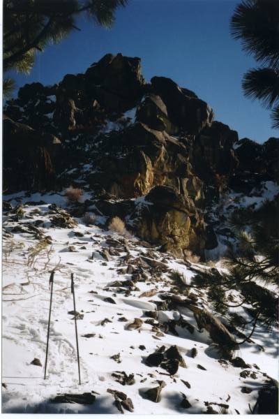 On the way back I met another snowshoer who, it turned out, was an avid backcountry skiier and had gone from Lee Vining to Tioga Pass last winter. We chatted a lot about equipment, but all I can remember is a recommendation of Rainey bindings, sold only on the Internet.