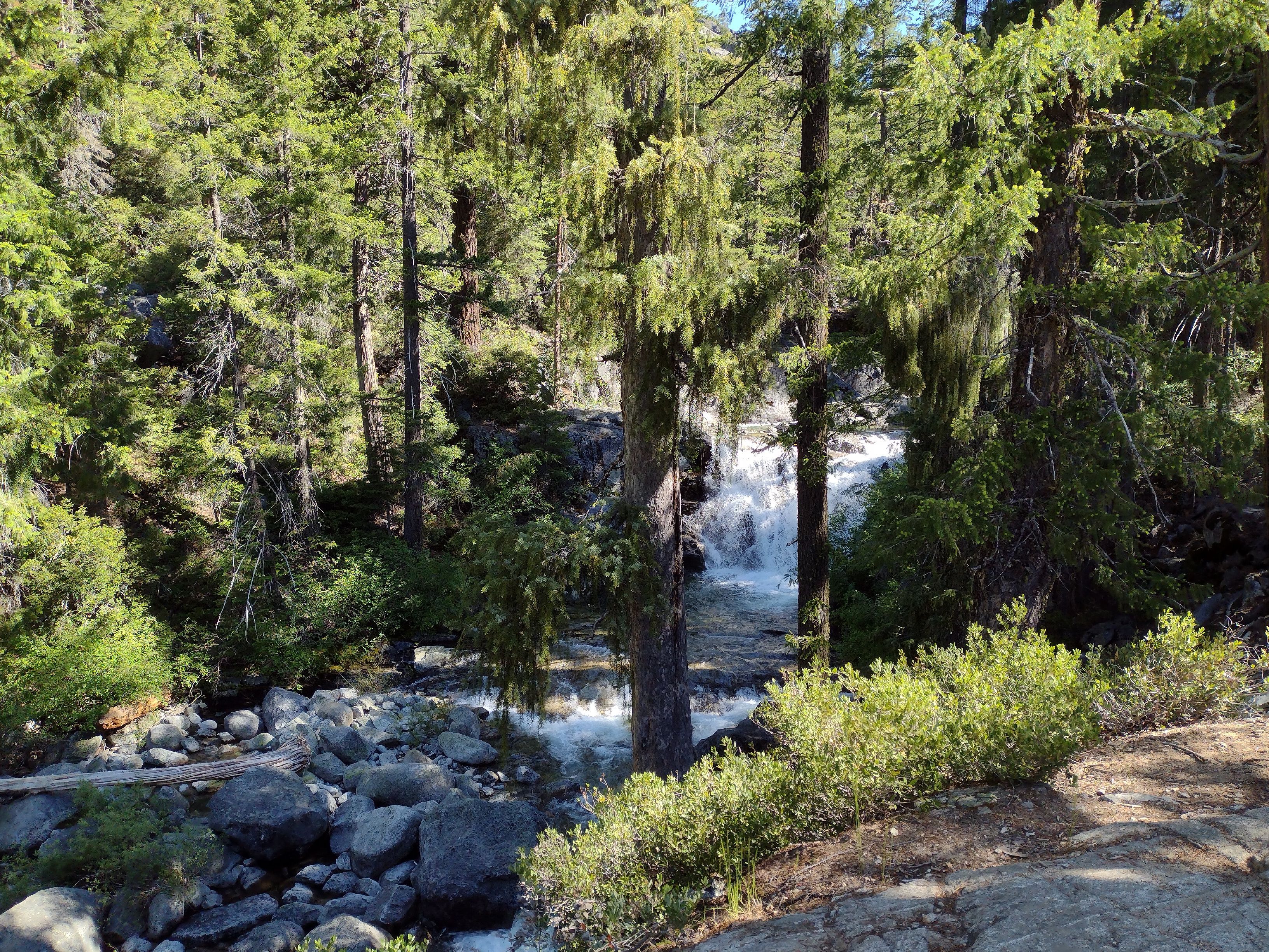 On the way to Redding we stop for a short hike (.3 miles) at Crystal Falls, which turns out to be quite charming. We bushwhack upstream another 100 feet or so and there's an even more beautiful waterfall, with a sandy pool at its base.