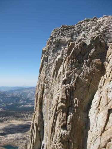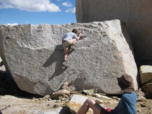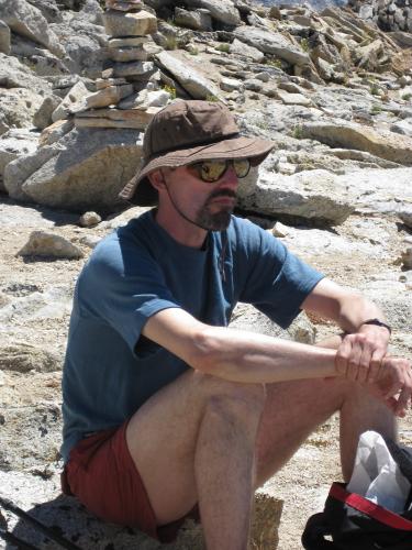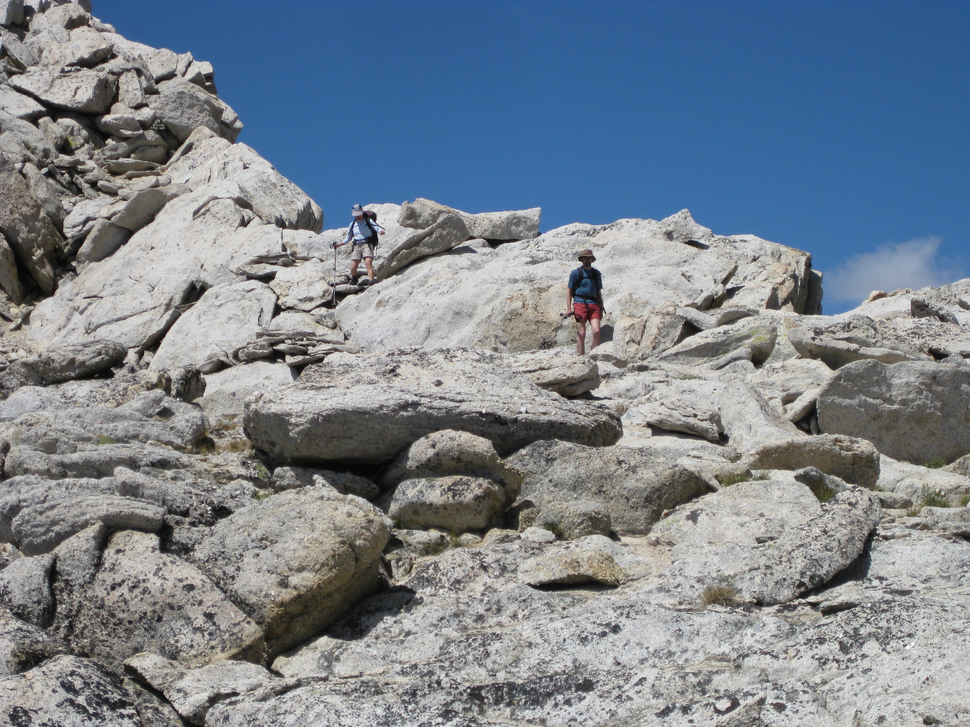 It's a perfect day: calm, sunny, neither cool nor warm. The hike up Conness is uneventful. We all feel the altitude a bit, and keep a moderate pace. We cross paths repeatedly with a group of three men on the last leg of a Sierra high country trip, and after summiting are going to drop down the glacier side of the east ridge and continue to Matterhorn Peak.