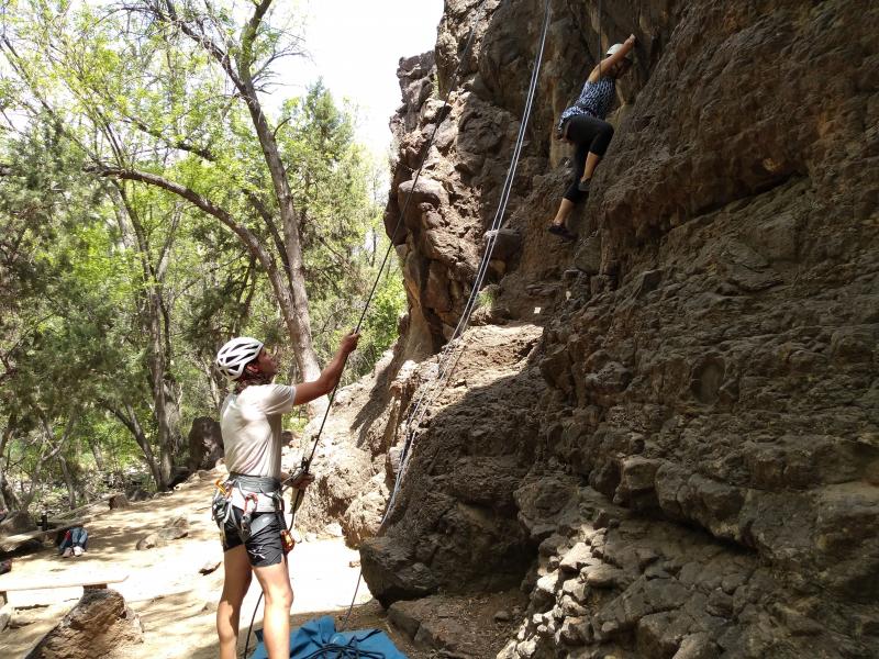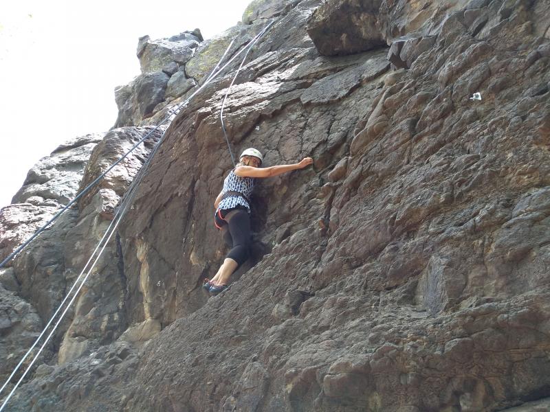 My last climb is a 5.9 which Rob thinks is a 10A. I'm feeling pretty strong by that point, and I flash it; in retrospect I wish I'd tried something harder.