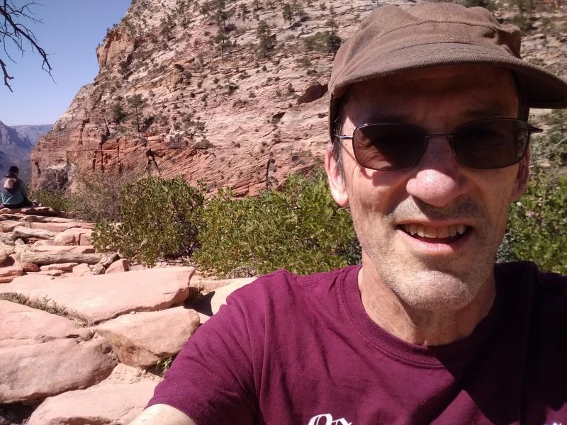 We drive about an hour. Rob explains the origins of town names like "La Verkin", and about the PC efforts to rename Dixie College (actually named after a Mr. Dixie). He says the tourist business in Zion is booming - it was up in the COVID year, and even more this year. The guiding companies are booked for months. He tells us to get an early start on Angel's Landing to avoid massive waits.